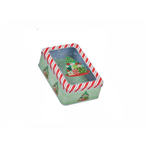 Κουτί μεταλλικό παραλληλόγραμμο με χριστουγεννιάτικα σχέδια και διαφάνεια στο καπάκι. Ιδανικό για δωράκια, γλυκίσματα ή ότι άλλο επιθυμείτε.