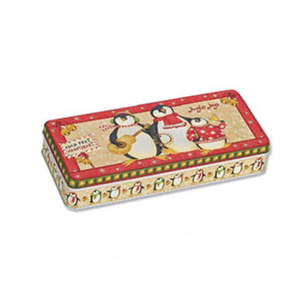 Μεταλλικό με ανάγλυφο χριστουγεννιάτικο σχέδιο πιγκουινάκια. Οι διαστάσεις του είναι 24χ10,5χ4,5.