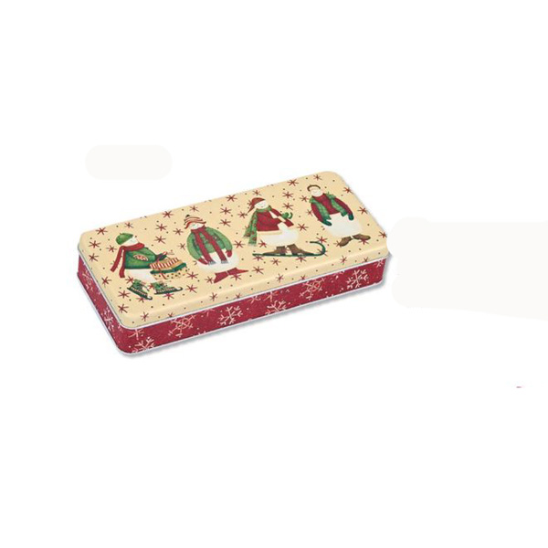Μεταλλικό κουτί με χριστουγεννιάτικο σχέδιο χιονανθρωπάκια. Οι διαστάσεις του είναι 24Χ10,5Χ4,5.