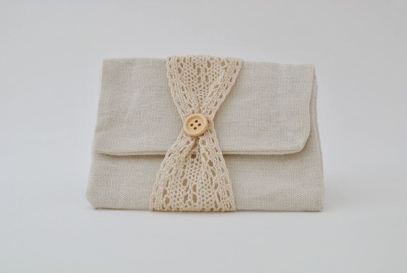 Φάκελος υφασμάτινος εκρού με δέσιμο δαντέλα με κουμπάκι. Μία όμορφη πρόταση για συσκευασία δώρου ή ακόμη και για μπομπονιέρα γάμου ή βάπτισης.