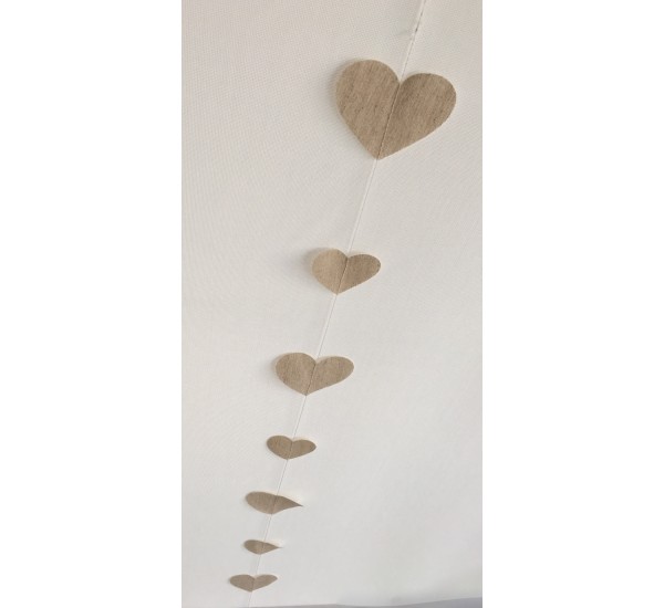 Γιρλάντα με λινές καρδιές σε φυσική απόχρωση. Μία πολύ όμορφη πρόταση για διακόσμηση γάμου και αρραβώνα.