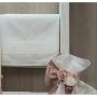 Το σετ περιλαμβάνει: πετσέτα σώματος, σεντονάκι, πετσέτα χεριών, εσώρουχα και καπελάκι.