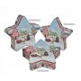 Μεταλλικό κουτί σε σχήμα αστέρι με χριστουγεννιάτικες παραστάσεις.