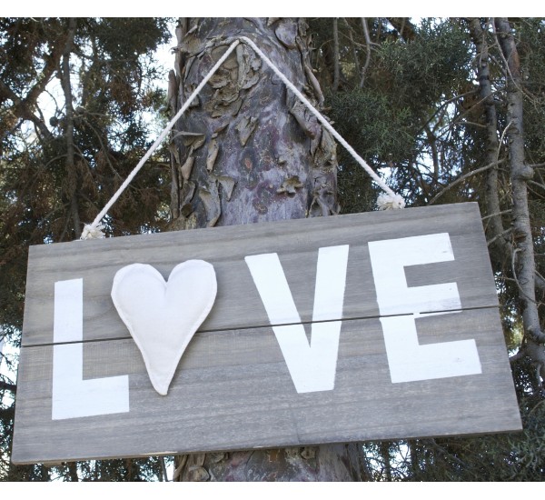Ξύλινη ταμπέλα LOVE με πάνινη καρδιά