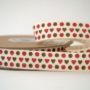 Υφασμάτινο πουγκί σε φυσική απόχρωση με καφέ πουά και ξύλινη καρδιά στο κούμπωμα του. Μία ιδανική πρόταση για συσκευασία δώρου ή ακόμα και για μπομπονιέρα βάπτισης.