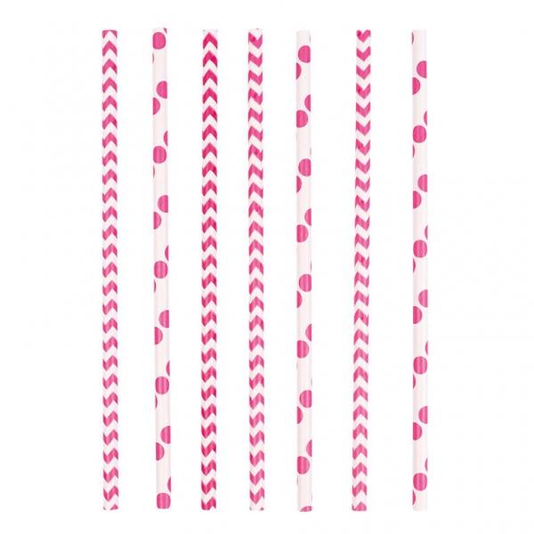 Χάρτινα καλαμάκια με σχέδια σε φούξια χρώμα. Μία μικρή λεπτομέρεια η οποία θα δώσει μία ξεχωριστή πινελιά στο πάρτι σας και θα εντυπωσιάσει τους καλεσμένους σας.